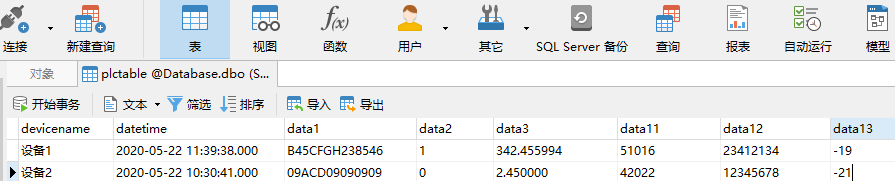 首先,通過navicat連接數據庫建立一個名稱plctable的數據表,表結構如下: