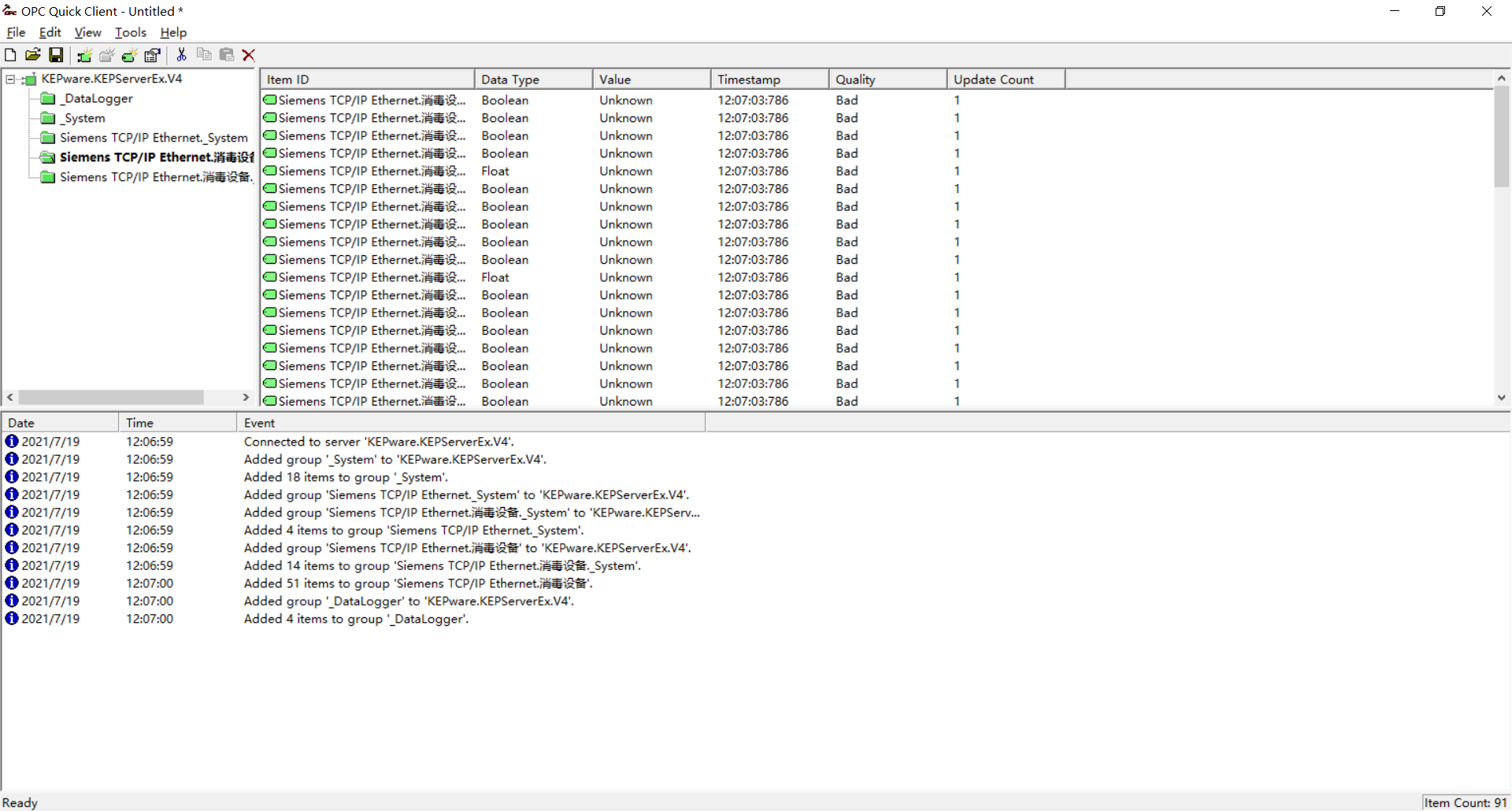 看起來像是你的兩個TSAP都設置成了4D57,這時組態軟件是使用了CP243-1的PG資源連接,而PG資源同時只能連接一臺設備,所以易控在通訊的情況下,KEPWARE是連接不上的。