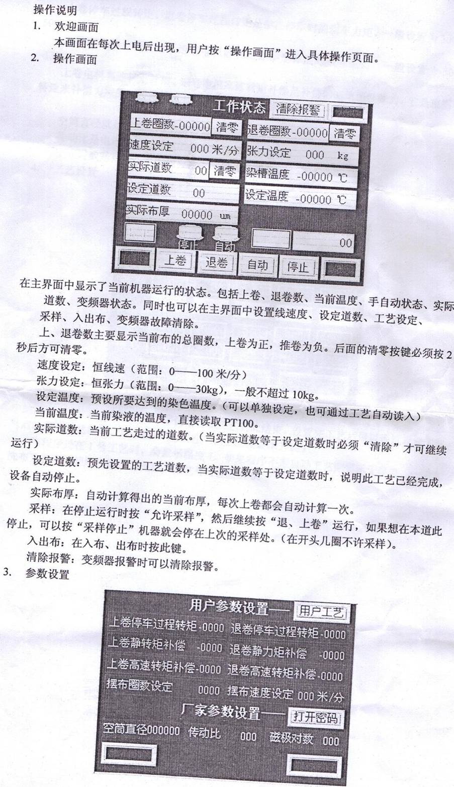 不明白的有這么1、張力設定 Kg;2、上(退)卷停車過程轉(zhuǎn)距、上(退)卷靜轉(zhuǎn)距補償、上(退)卷高速轉(zhuǎn)距補償。以及擺布圈數(shù)設定。這些做用是做什么的。究竟是怎么應用到整個設備運行程序中的。