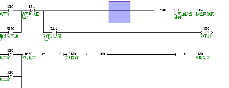 你這個(gè)會(huì)加兩次的,M10接通加一次,M10接通到時(shí)間又加一次。然后M10長(zhǎng)按會(huì)導(dǎo)致M20到時(shí)間會(huì)置位復(fù)位置位復(fù)位不停地加