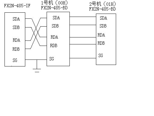 但是我按下圖的連接,在一號機PLC后再串聯一臺二號機PLC,兩臺PLC均不能正常通信。