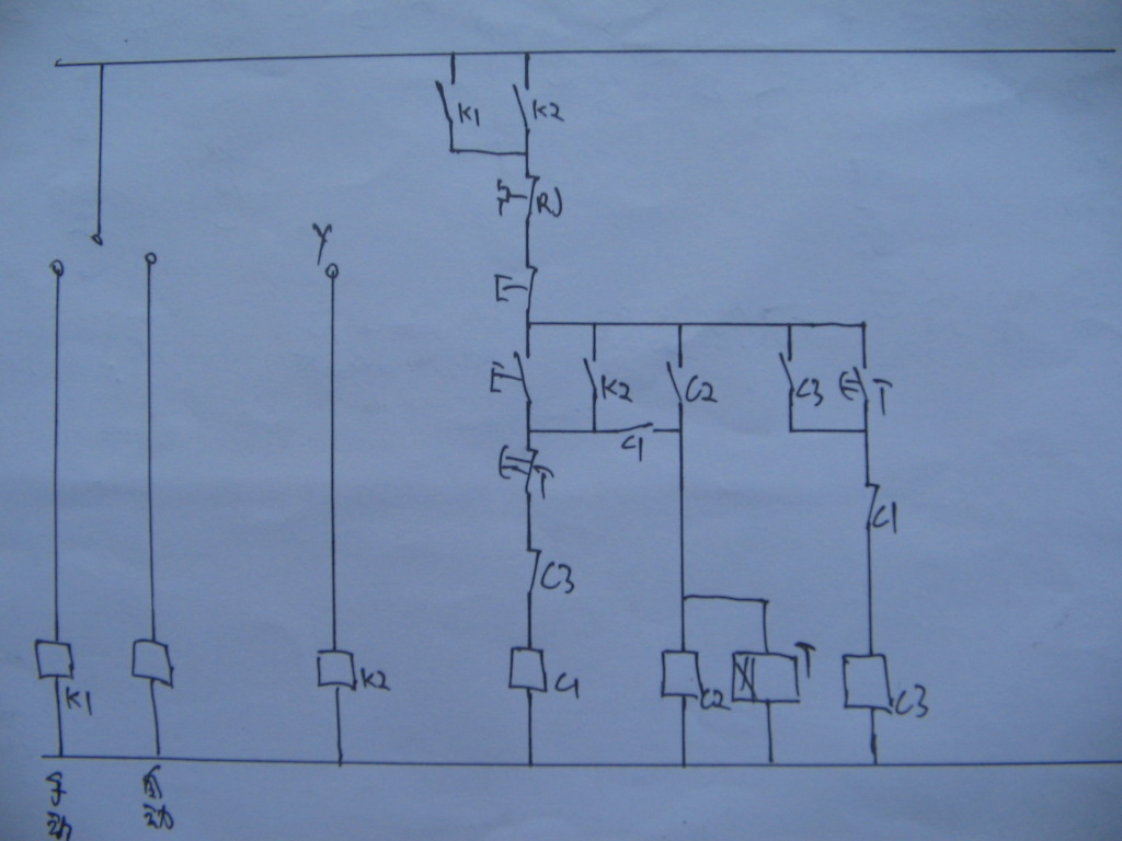 電機(jī)星三角手動(dòng)起動(dòng)時(shí)K1閉合,用按鈕控制接觸器起動(dòng)及停止。PLC自動(dòng)控制時(shí),K2線圈得電,常開(kāi)觸點(diǎn)閉合起動(dòng),K2失電停止工作(想利用PLC一個(gè)輸出點(diǎn)控制三個(gè)接觸器進(jìn)行星三角起動(dòng)及停止,這樣是否利用PLC控制中間繼電器再控制三個(gè)接觸器工作)。請(qǐng)問(wèn)控制是否安全可行,另怎樣操作還會(huì)好些,可否畫圖說(shuō)明。謝!