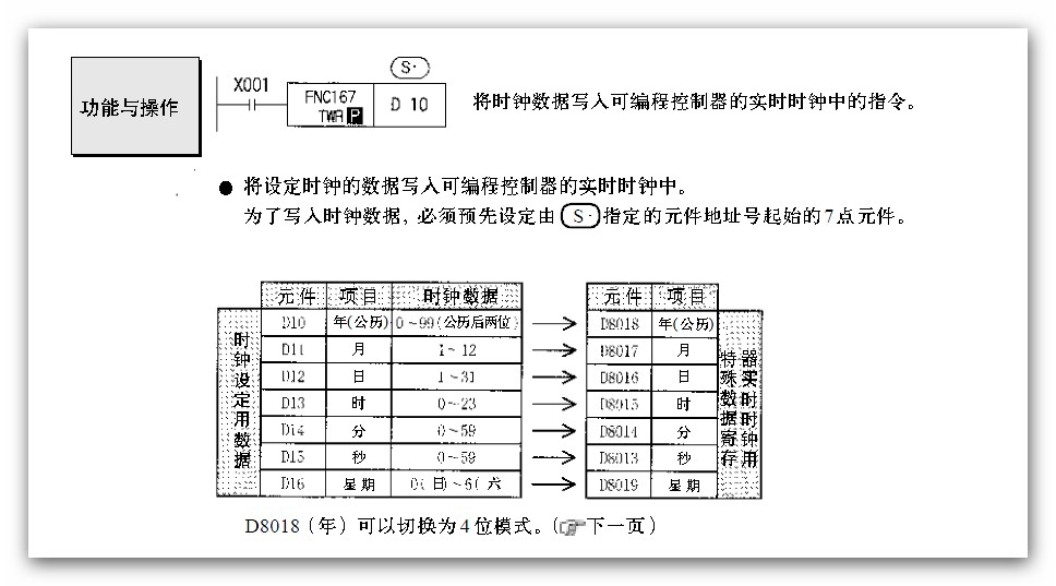 求三菱FX1S的PLC的時(shí)間怎么編寫,D8013---D8019
